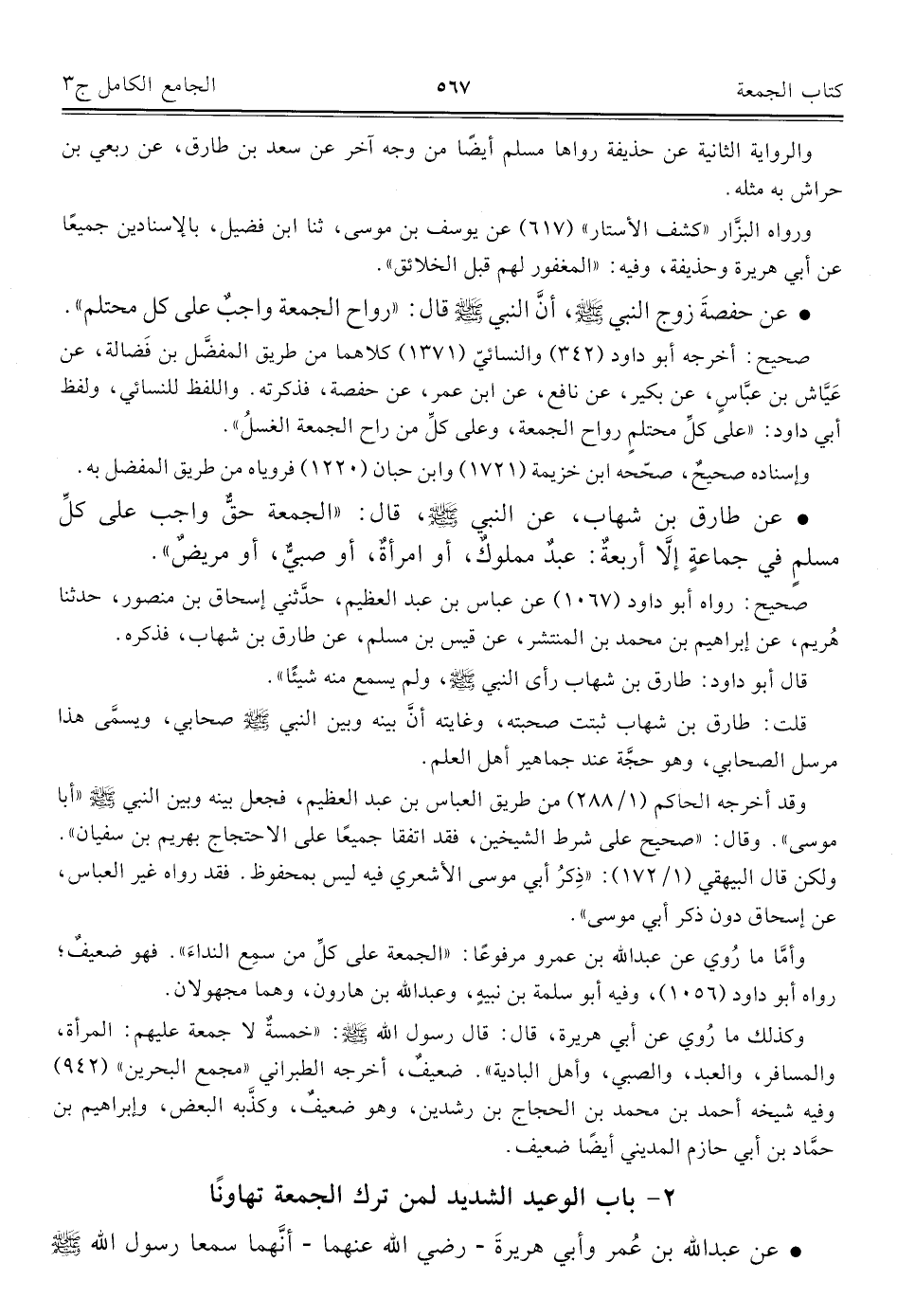 كتاب الجامع الكامل في الحديث الصحيح الشامل المرتب على أبواب الفقه (اسم الجزء: 3)