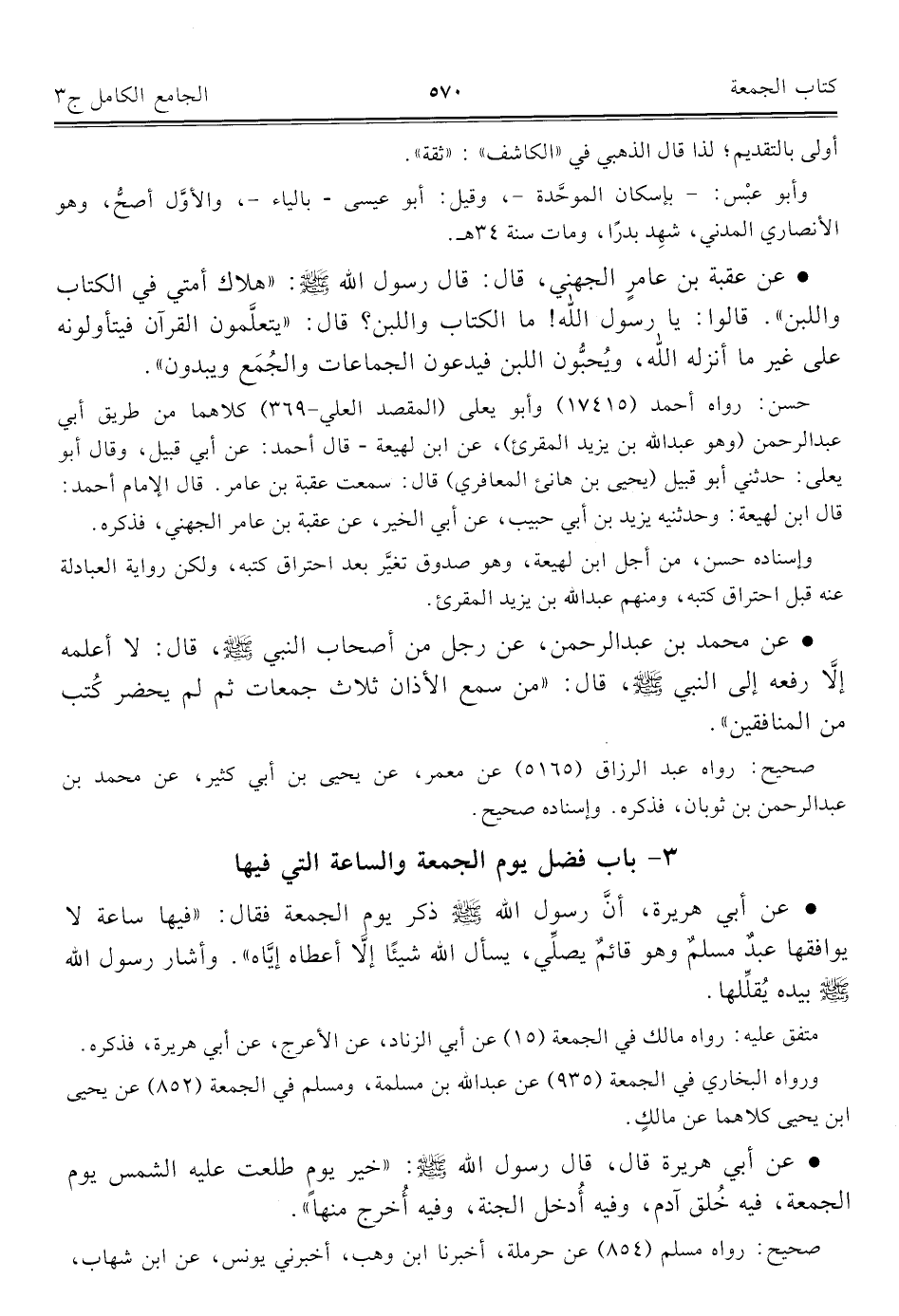 كتاب الجامع الكامل في الحديث الصحيح الشامل المرتب على أبواب الفقه (اسم الجزء: 3)