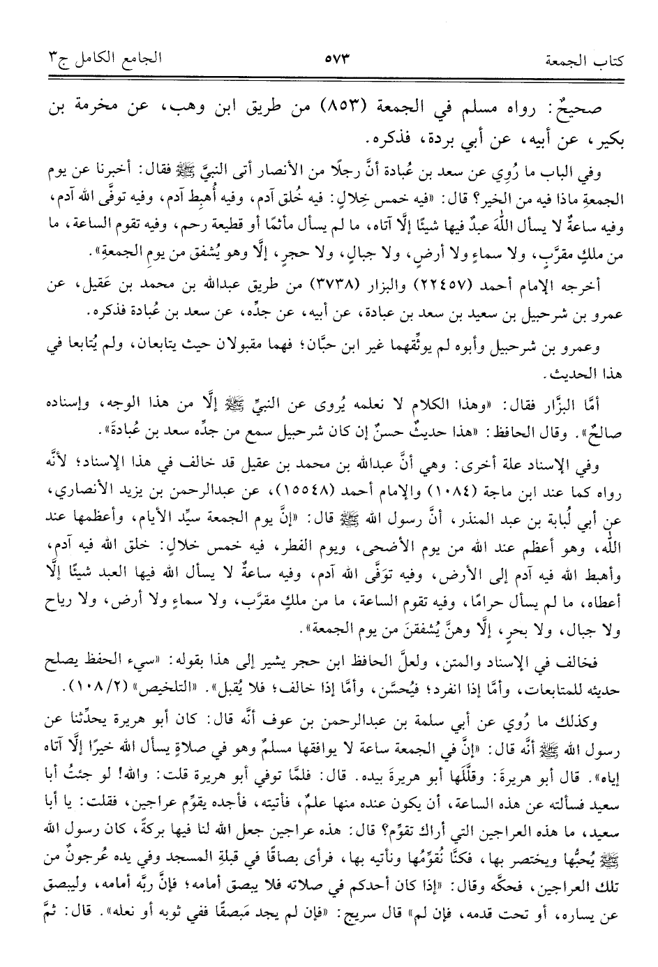 كتاب الجامع الكامل في الحديث الصحيح الشامل المرتب على أبواب الفقه (اسم الجزء: 3)