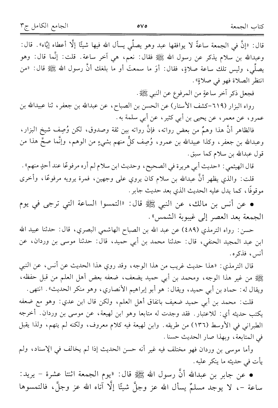 قلت: والذي يظهر أن عبد الله بن سلام كان يروي على وجهين، فمرة يرويه مرفوعًا، وأخرى موقوفًا، كما يدل عليه الحديث الذي بعد حديث جابر.