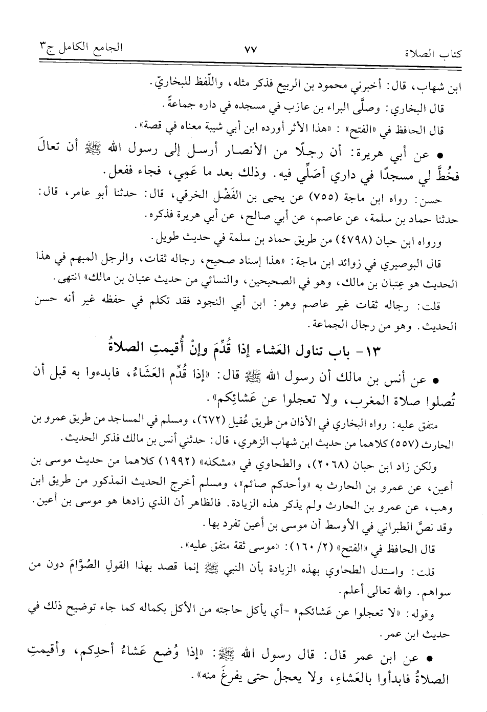 كتاب الجامع الكامل في الحديث الصحيح الشامل المرتب على أبواب الفقه (اسم الجزء: 3)