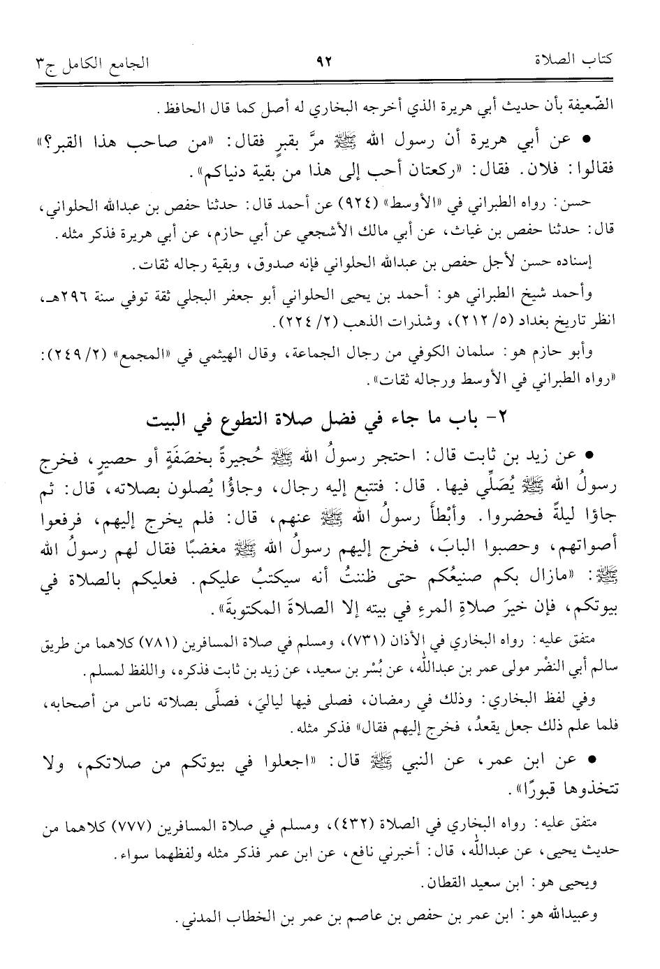 كتاب الجامع الكامل في الحديث الصحيح الشامل المرتب على أبواب الفقه (اسم الجزء: 3)