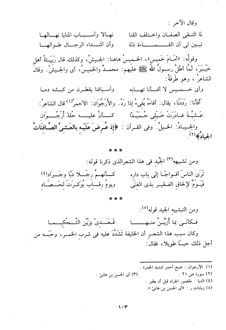 ومن تشبيهه3 الجيد في هذا الشعر الذي ذكرنا قوله: