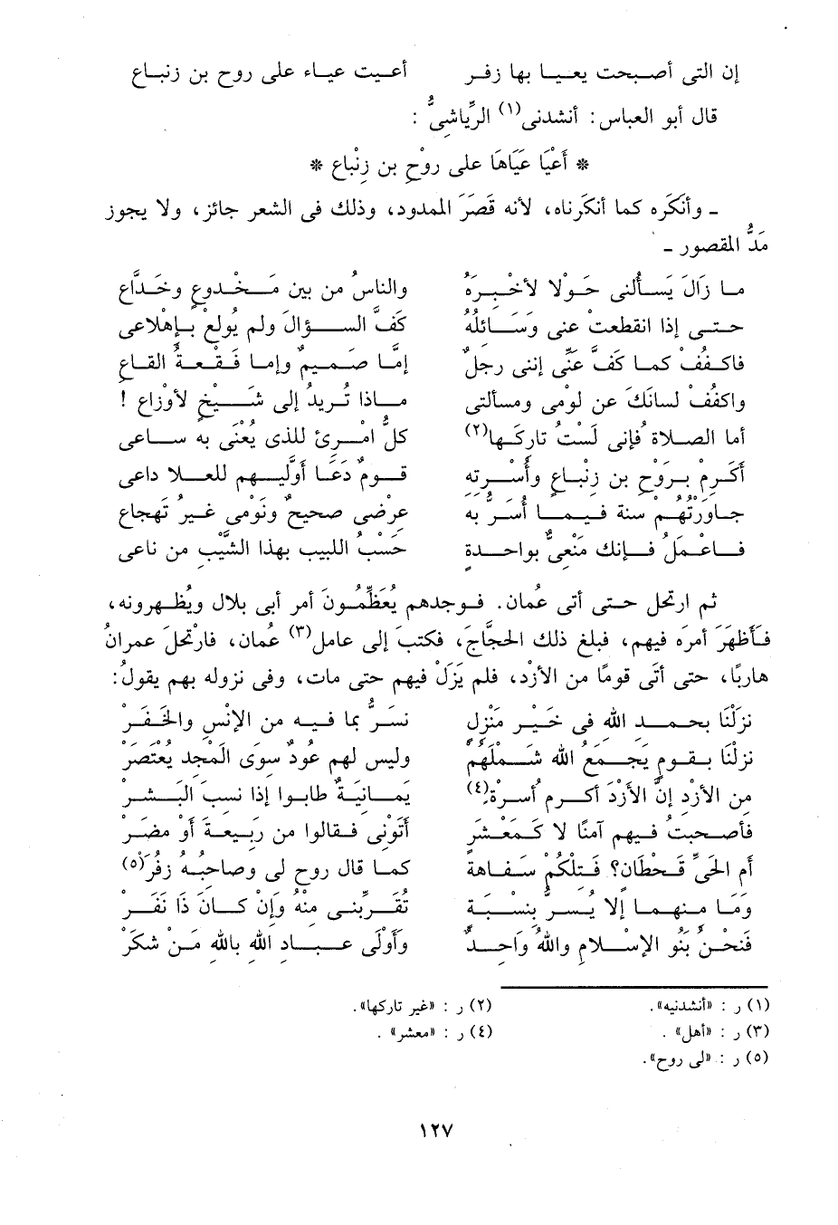 إن التي أصبحت يعيا بها زفر ... أعيت عياء على روح بن زنباع