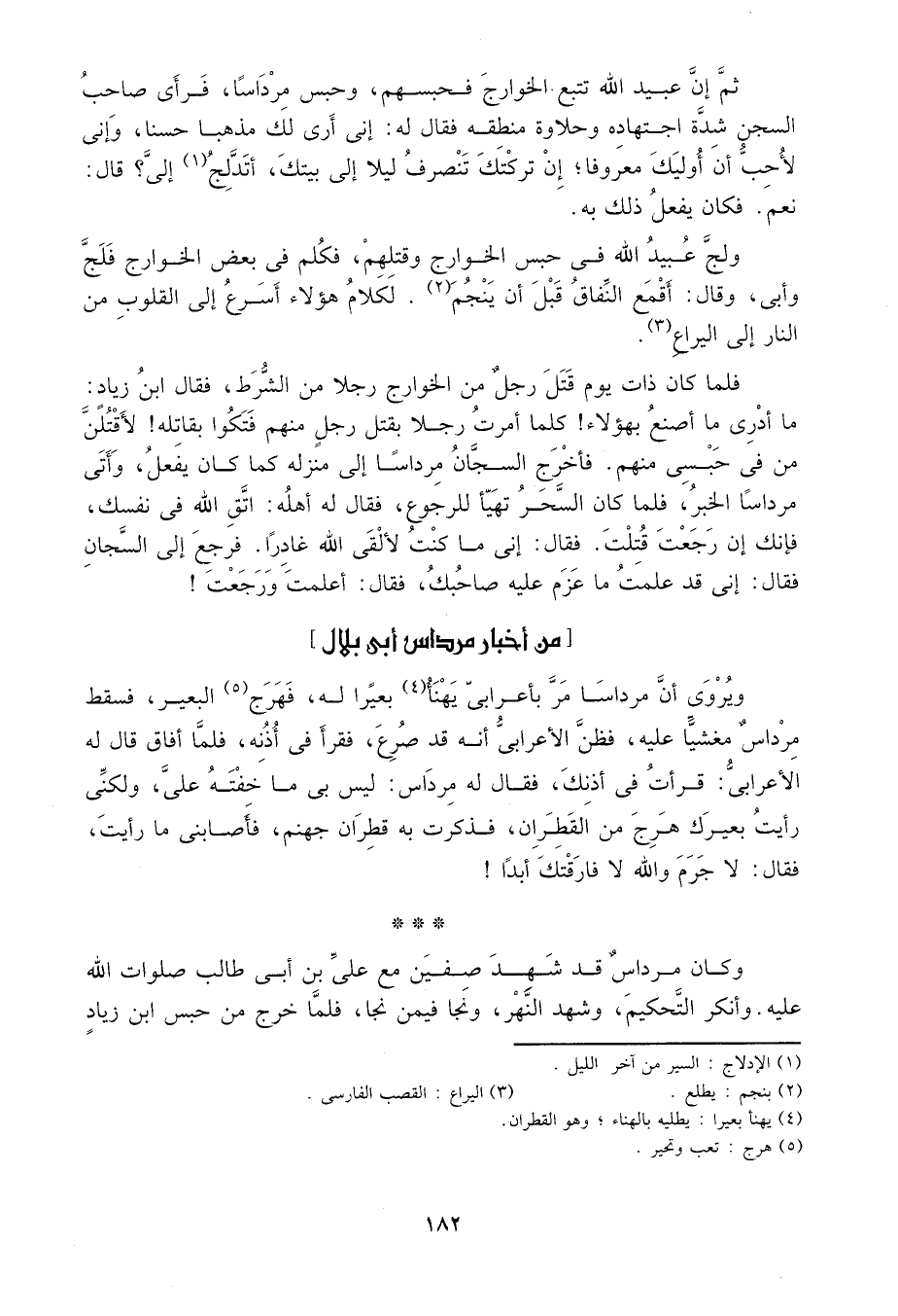 ثم إن عبيد الله تتبع الخوارج فحبسهم، وحبس مرداساً، فرأى صاحت السجن شدة اجتهاده وحلاوة منطقه فقال له: إني أرى لك مذهباً حسناً، وإني لا أحب أن أوليك معروفاً؛ إن تركتك تنصرف ليلاً إلى بيتك، أتدلج1 إلي? قال: نعم. فكان يفعل ذلك به.