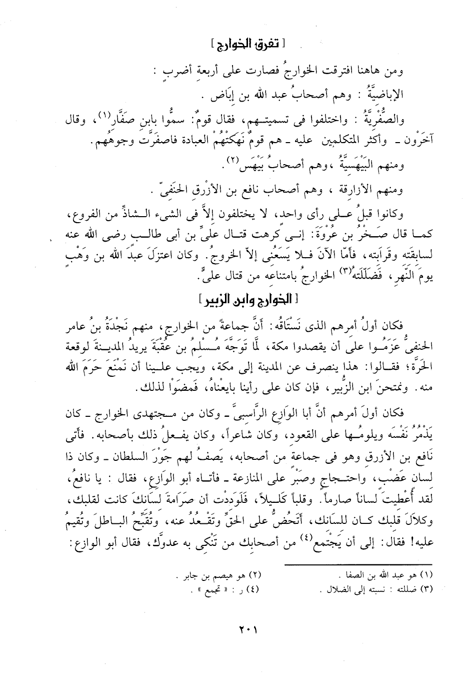 والصفرية، واختلفوا في تسميتهم، فقالوا قوم: سموا بابن صفار1 وقال آخرون - وأكثر المتكلمين عليه -: هم قوم نهكتهم العبادة فاصفرت وجوههم..