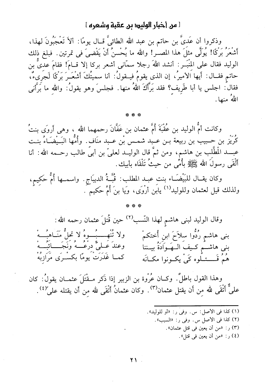 وقال الوليد لبني هاشم لهذا النسب2 حين قتل عثمان رحمه الله: