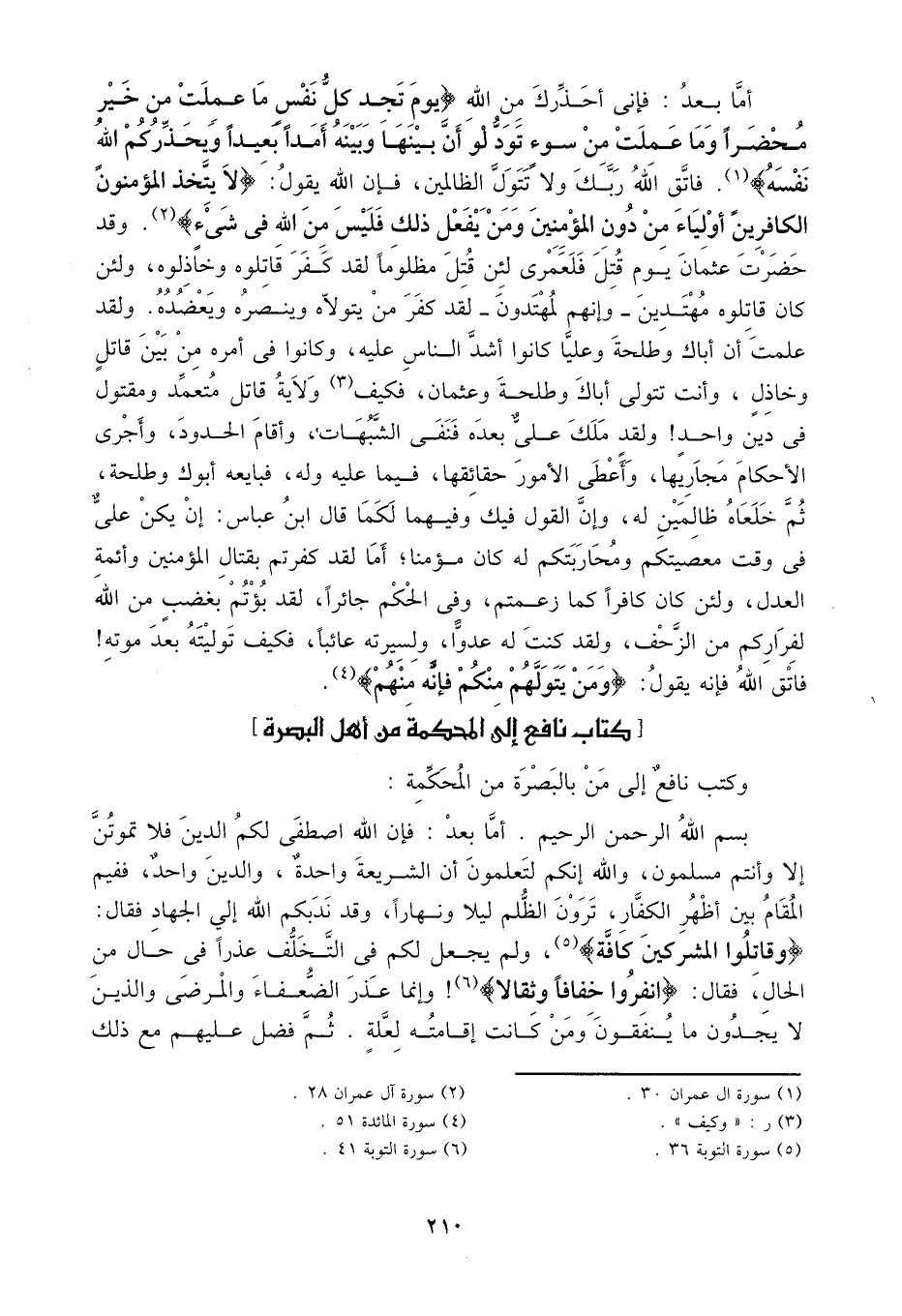 كتاب نافع إلى المحكمة من أهل البصرة