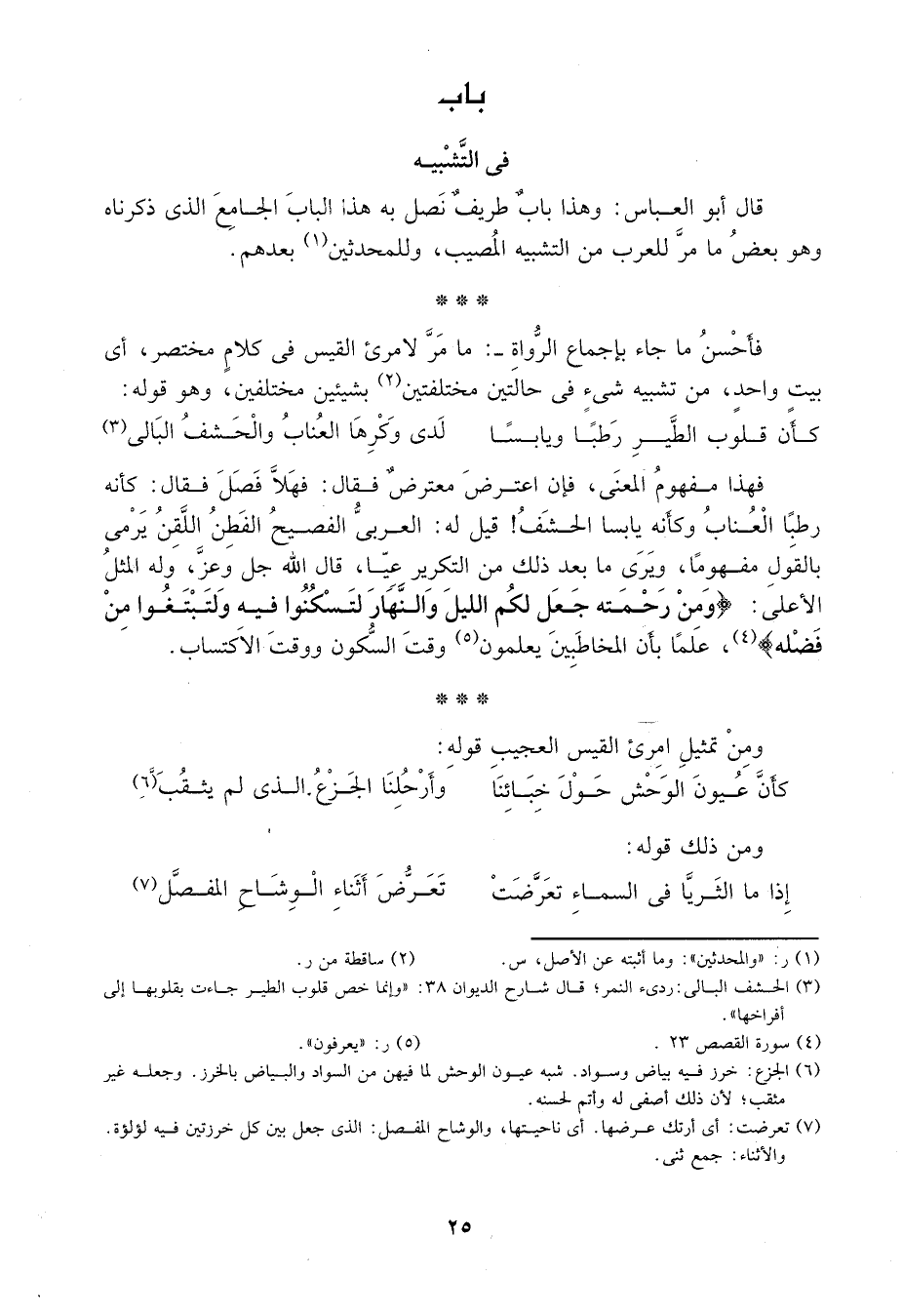 قال أبو العباس: وهذا باب طريف نصل به هذا الباب الجامع الذي ذكرناه وهو بعض ما مر للعرب من التشبه المصيب, وللمحدثين1 بعدهم.