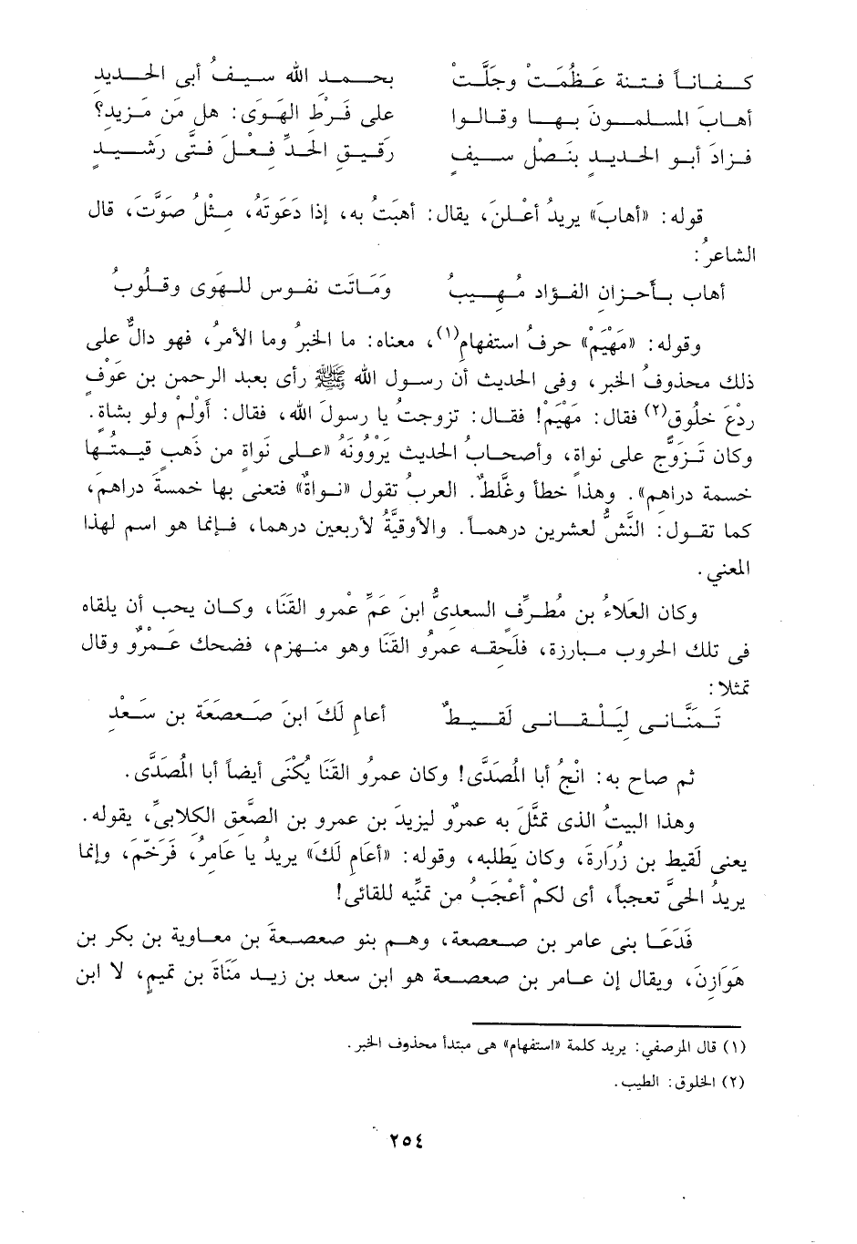 وهذا البيت الذي تمثل به عمرو ليزيد بن عمرو بن الصعق الكلابي، يقوله يعني لقيط بن زرارة، وكان يطلبه. وقوله: "أعام لك" يريد يا عامر، فرخم، وإنما يريد الحي تعجباً، أي لكم أعجب من تمنيه للقائي! فدعا بني عامر بن صعصعة، وهم بنو صعصعة بن معاوية بن بكر بن هوازن، ياقل إن عامر بن صعصعة هو ابن سعد بن زيد مناة بن تميم، لا ابن