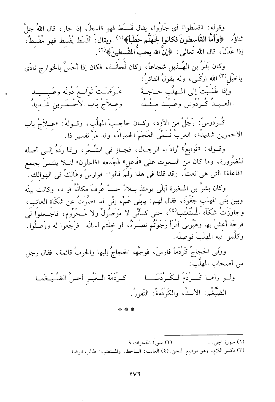 وقوله: قسطوا أي جاروا، يقال قسط فهو قاسط، إذا جار، قال الله جل ثناؤه: {وَأَمَّا الْقَاسِطُونَ فَكَانُوا لِجَهَنَّمَ حَطَباً} 1. ويقال: أقسط يقسط فهو مقسط، إذا عدل، قال الله تعالى: {إِنَّ اللَّهَ يُحِبُّ الْمُقْسِطِينَ} 2.