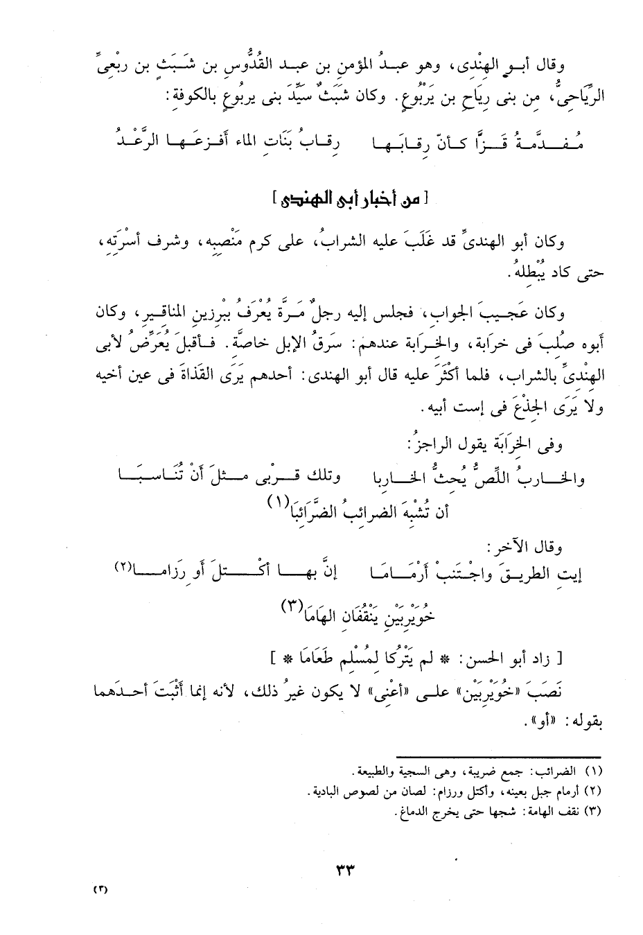 وكان أبو الهندي قد غلب عليه الشراب، على كرم منصبه، وشرف أسرته حتى كاد يبطله.