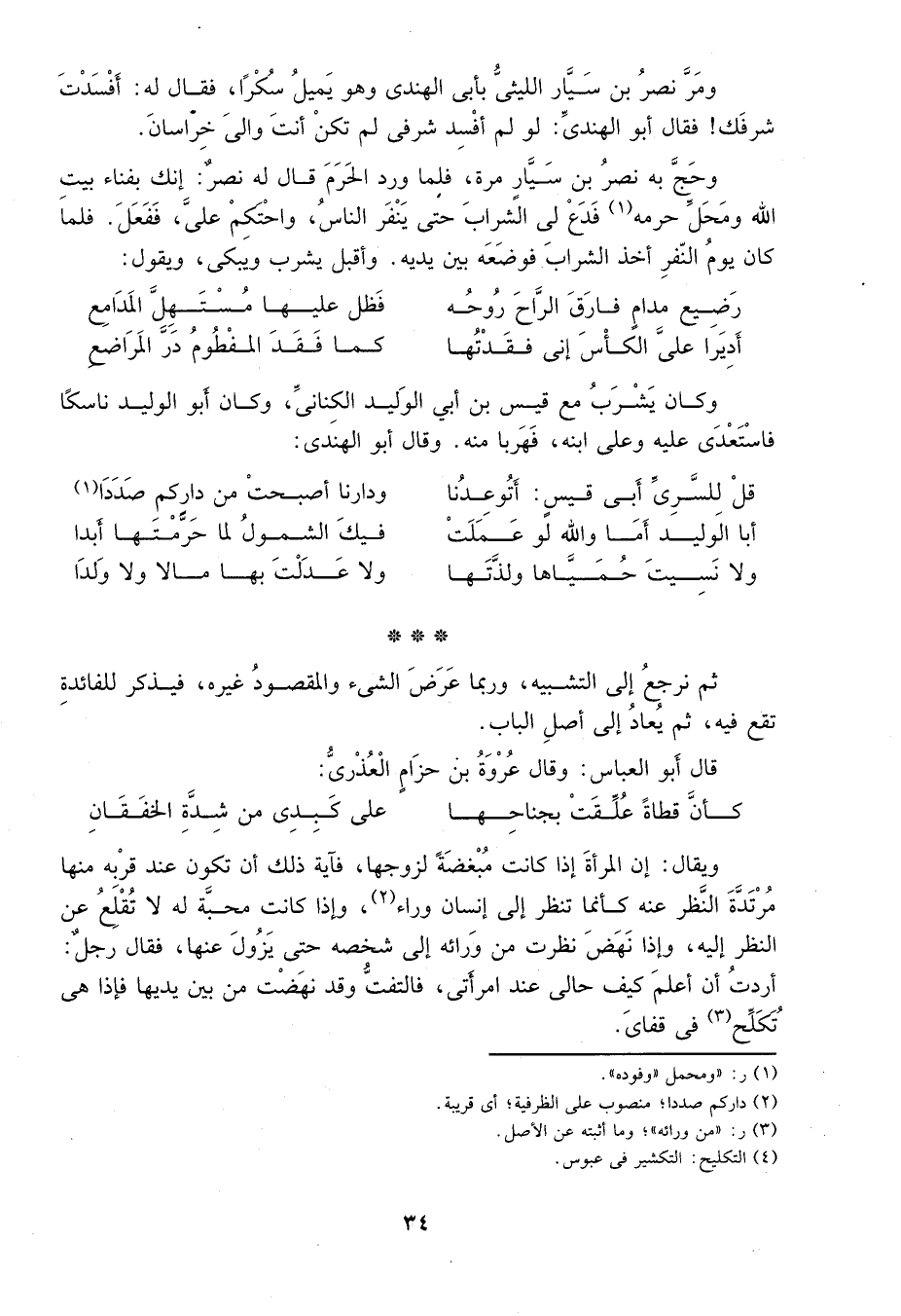 ثم نرجع إلى التشبيه، وربما عرض الشيء المقصود غيره، فيذكر للفائدة تقع فيه، ثم يعاد إلى أصل الباب.