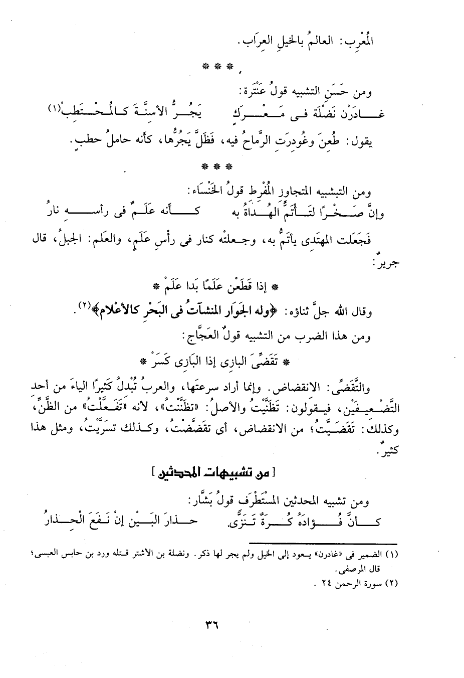 ومن التشبيه المتجاوز المفرط، قول الخنساء: