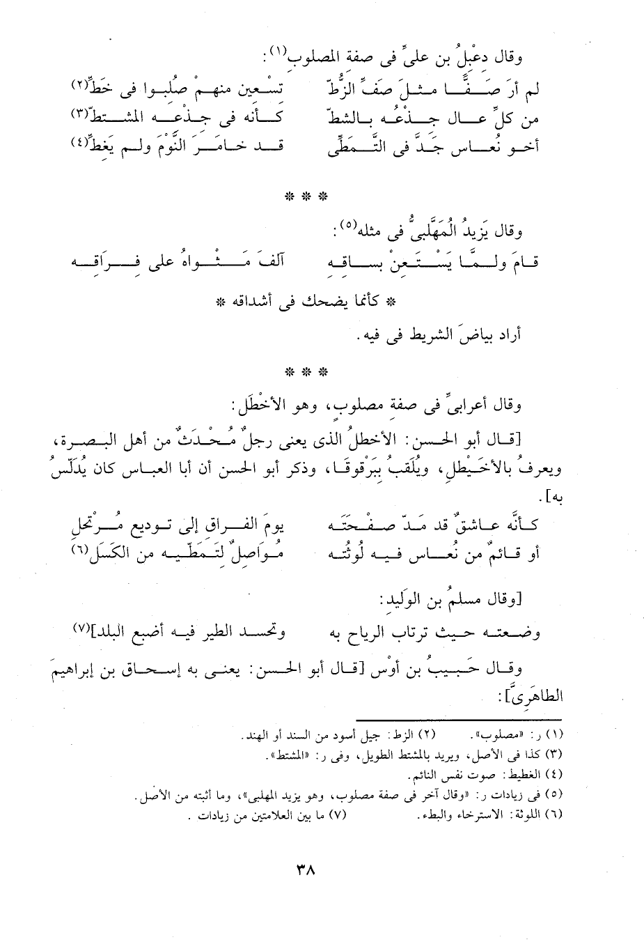 5 في زيادات ر: "وقال آخر في صفة مصلوب, وهو يزيد المهلبي", وما أثبته من الأصل.