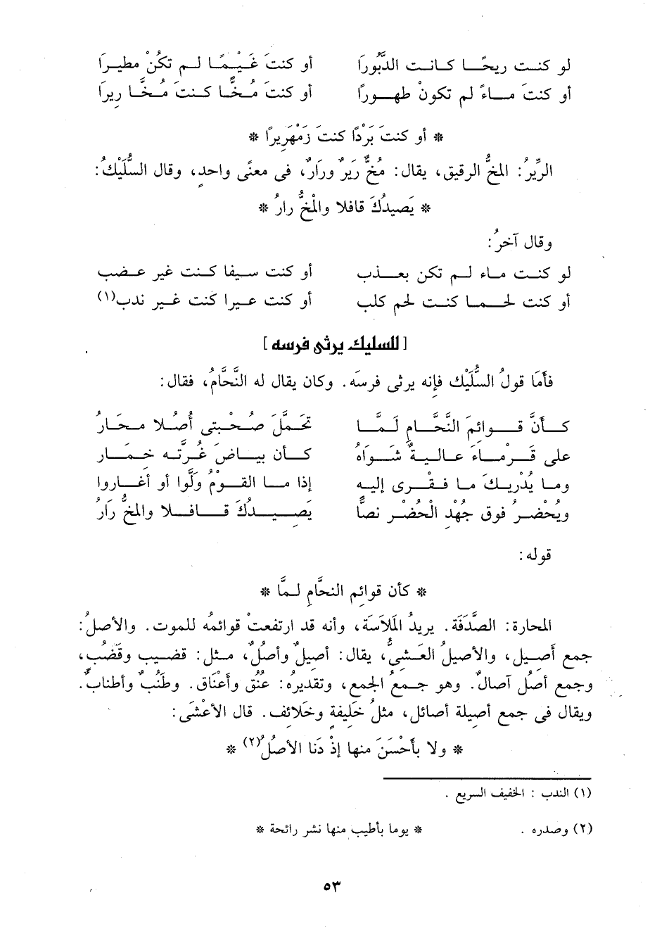 فأما قول السليك فإنه يرثي فرسه، وكان يقال له النحام، فقال: