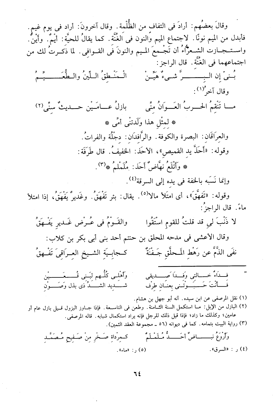 وقوله: تفهق أي امتلأ مالاً5. يقال: بئر تفهق وغدير يفهق إذا امتلأ ماء. قال الراجز: