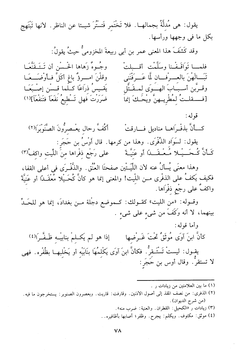 2 الذفري: من نصف المقذ إلى أصول الأذنين. وقارفت: قاريت. وبعصرون الصنوبر: يستخرجون ما فيه. "من شرح الديوان".