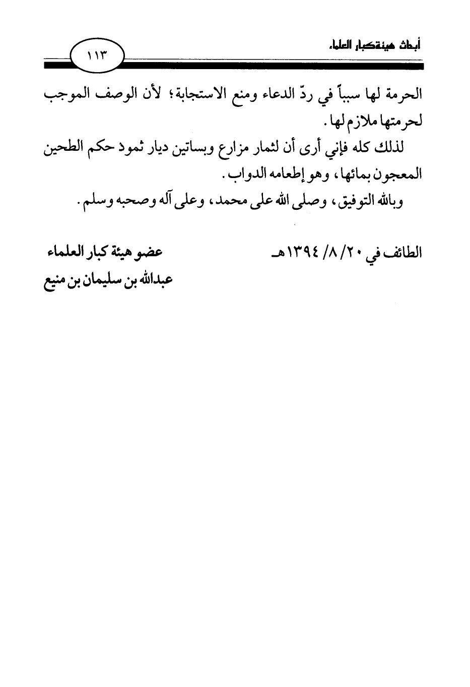 لذلك كله فإني أرى أن لثمار مزارع وبساتين ديار ثمود حكم الطحين المعجون بمائها، وهو إطعامه الدواب.