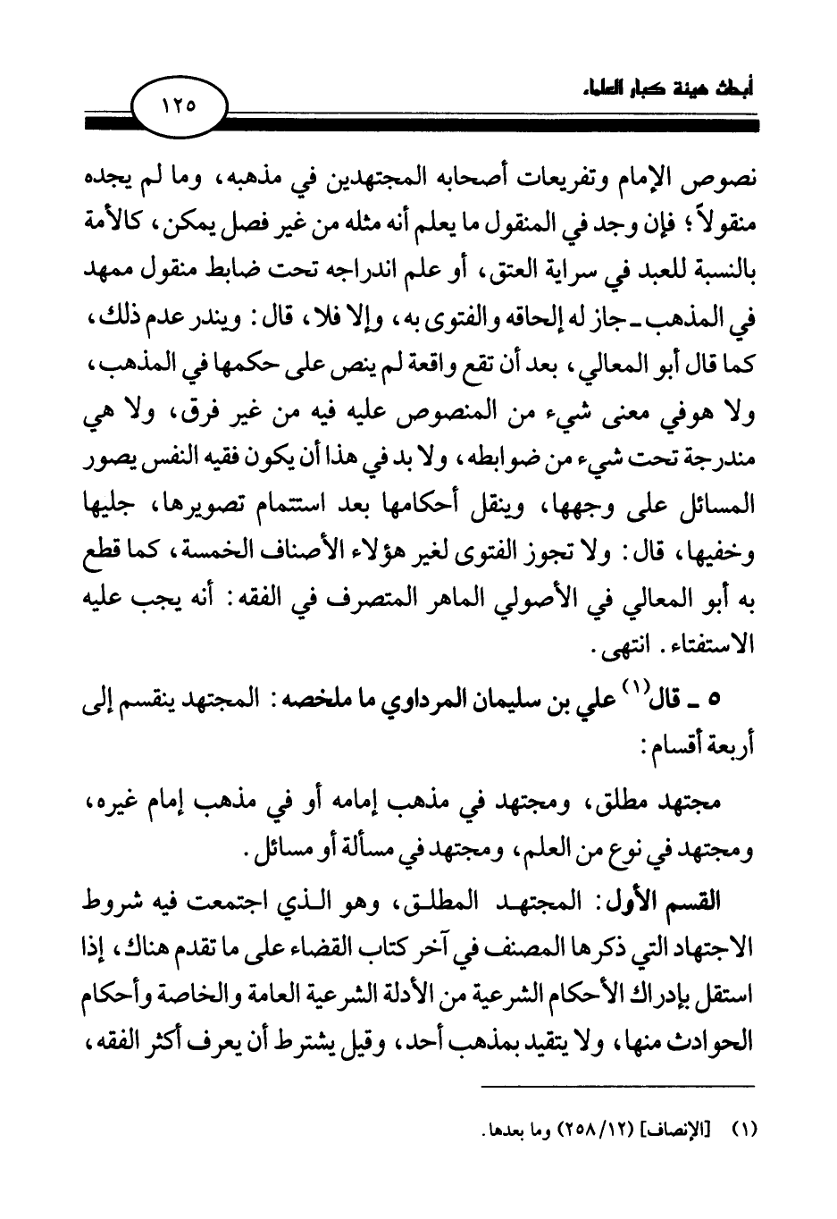 5 - قال (¬1) علي بن سليمان المرداوي ما ملخصه: المجتهد ينقسم إلى أربعة أقسام: