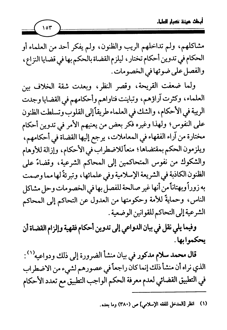 وفيما يلي نقل في بيان الدواعي إلى تدوين أحكام فقهية وإلزام القضاة أن يحكموا بها.