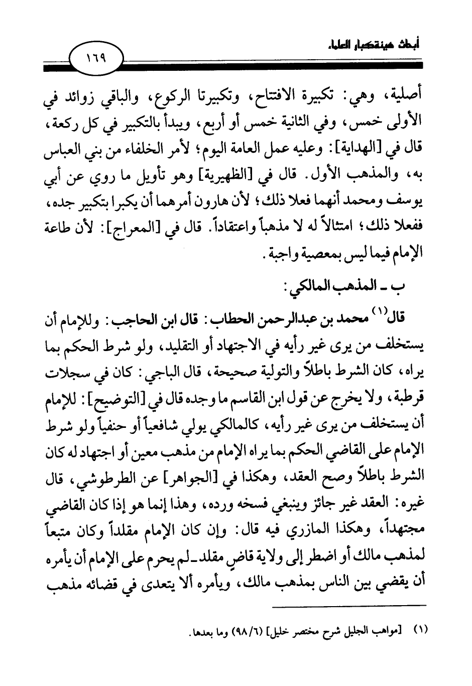(¬1) [مواهب الجليل شرح مختصر خليل] (6\98) وما بعدها.