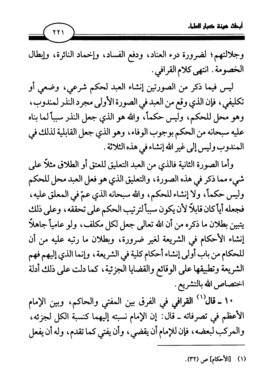 وجلالتهم؛ لضرورة درء العناد، ودفع الفساد، وإخماد النائرة، وإبطال الخصومة. انتهى كلام القرافي.