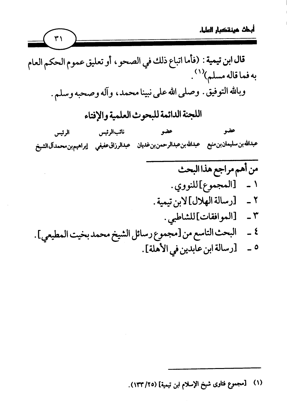 عبد الله بن سليمان بن منيع ... عبد الله بن عبد الرحمن بن غديان ... عبد الرزاق عفيفي ... إبراهيم بن محمد آل الشيخ