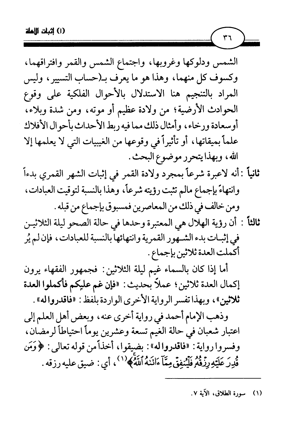 الشمس ودلوكها وغروبها، واجتماع الشمس والقمر وافتراقهما، وكسوف كل منهما، وهذا هو ما يعرف بـ (حساب التسيير، وليس المراد بالتنجيم هنا الاستدلال بالأحوال الفلكية على وقوع الحوادث الأرضية؛ من ولادة عظيم أو موته، ومن شدة وبلاء، أو سعادة ورخاء، وأمثال ذلك مما فيه ربط الأحداث بأحوال الأفلاك علما بميقاتها، أو تأثيرا في وقوعها من الغيبيات التي لا يعلمها إلا الله، وبهذا يتحرر موضوع البحث.