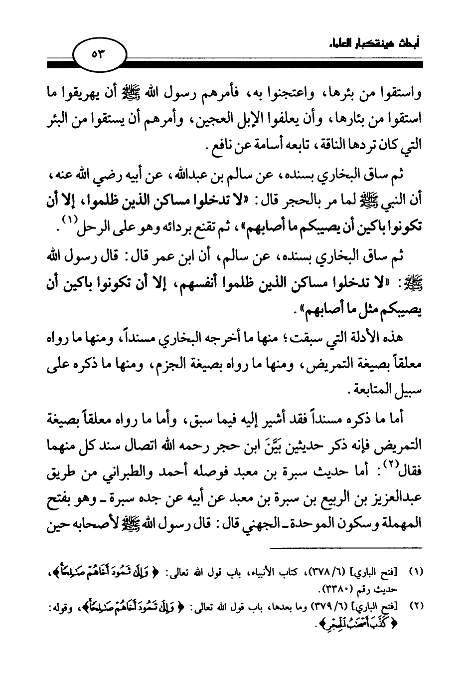 (¬1) [فتح الباري] (6 \ 378) ، كتاب الأنبياء، باب قول الله تعالى (وإلى ثمود أخاهم صالحا) حديث رقم (3380) .
