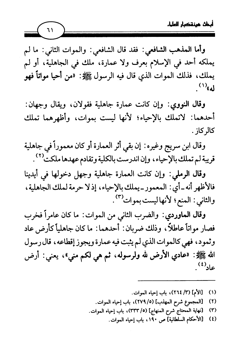 (¬4) [الأحكام السلطانية] ص 190، باب إحياء الموات.