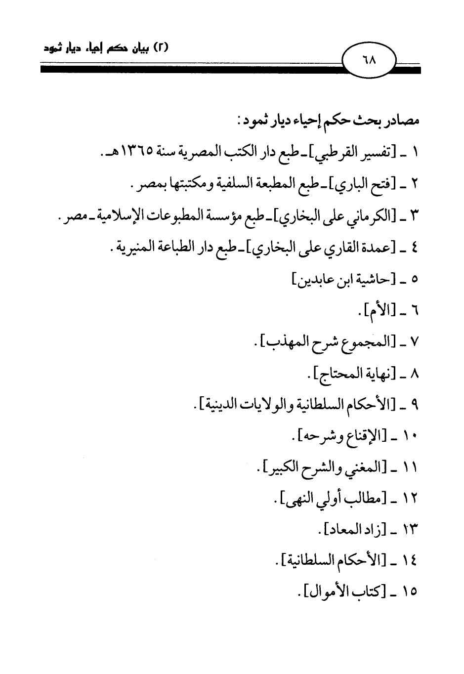 مصادر بحث حكم إحياء ديار ثمود: