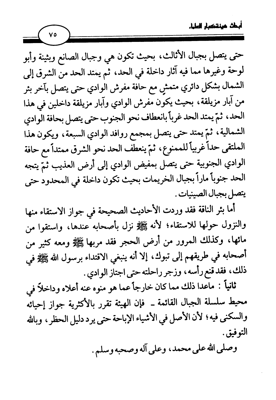 ثانيا: ما عد ذلك مما كان خارجا عما هو منوه عنه أعلاه وداخلا في محيط سلسلة الجبال القائمة - فإن الهيئة تقرر بالأكثرية جواز إحيائه والسكنى فيه؛ لأن الأصل في الأشياء الإباحة حتى يرد دليل الحظر، وبالله التوفيق.