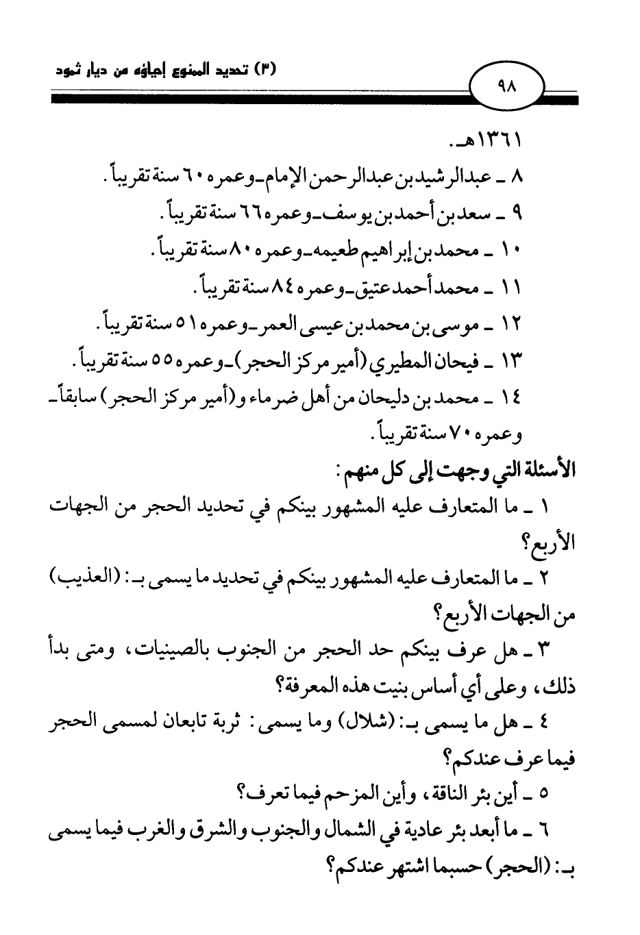 14 - محمد بن دليحان من أهل ضرماء (أمير مركز الحجر) سابقا - وعمره 70 سنة تقريبا.