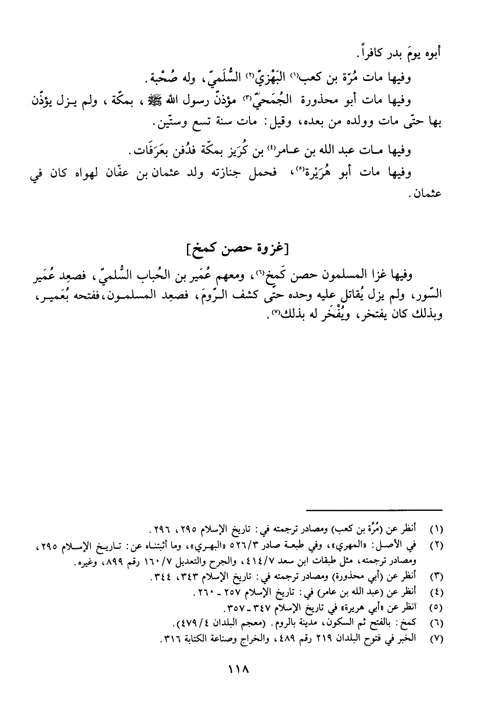وَفِيهَا غَزَا الْمُسْلِمُونَ حِصْنَ كَمْخٍ وَمَعَهُمْ عُمَيْرُ بْنُ الْحُبَابِ السُّلَمِيُّ، فَصَعِدَ عَمِيرٌ السُّورَ وَلَمْ يَزَلْ يُقَاتِلُ عَلَيْهِ وَحْدَهُ حَتَّى كَشَفَ الرُّومَ فَصَعِدَ الْمُسْلِمُونَ، فَفَتَحَهُ بِعُمَيْرٍ، وَبِذَلِكَ كَانَ يَفْتَخِرُ وَيُفْخَرُ لَهُ بِذَلِكَ.