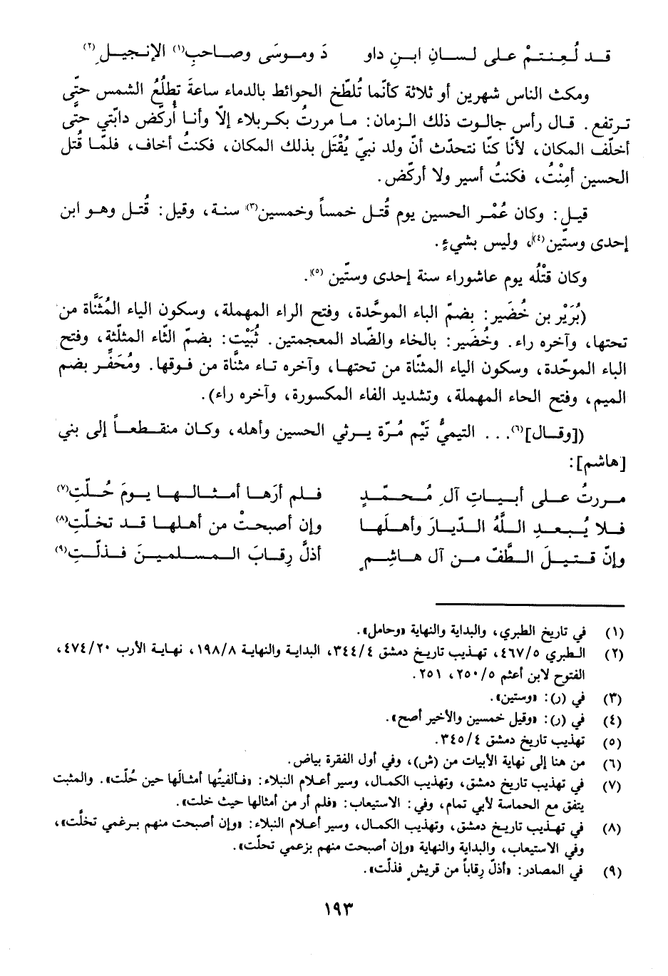 ( [وَقَالَ] . . . التَّيْمِيُّ تَيْمُ مُرَّةَ يَرْثِي الْحُسَيْنَ وَأَهْلَهُ وَكَانَ مُنْقَطِعًا إِلَى بَنِي [هَاشِمٍ] :