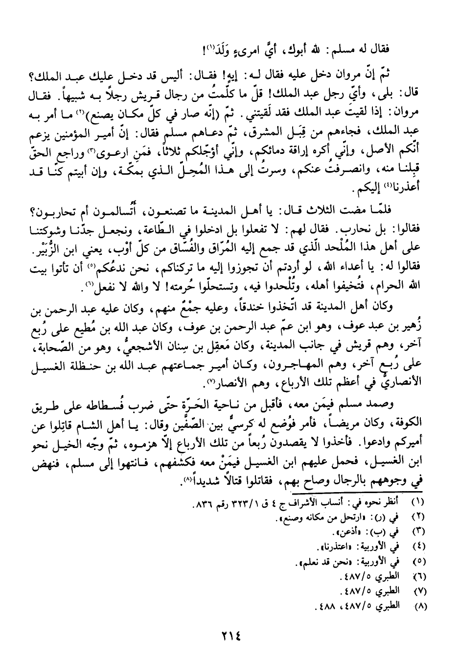 فَقَالَ لَهُمْ: لَا تَفْعَلُوا بَلِ ادْخُلُوا فِي الطَّاعَةِ وَنَجْعَلُ جِدَّنَا وَشَوْكَتَنَا عَلَى أَهْلِ هَذَا الْمُلْحِدِ الَّذِي قَدْ جَمَعَ إِلَيْهِ الْمُرَّاقَ وَالْفُسَّاقَ مِنْ كُلِّ أَوْبٍ، يَعْنِي ابْنَ الزُّبَيْرِ. فَقَالُوا لَهُ: يَا أَعْدَاءَ اللَّهِ لَوْ أَرَدْتُمْ أَنْ تَجُوزُوا إِلَيْهِ مَا تَرَكْنَاكُمْ، نَحْنُ نَدَعُكُمْ أَنْ تَأْتُوا بَيْتَ اللَّهِ الْحَرَامَ فَتُخِيفُوا أَهْلَهُ وَتُلْحِدُوا فِيهِ وَتَسْتَحِلُّوا حُرْمَتَهُ؟ ! لَا وَاللَّهِ لَا نَفْعَلُ.