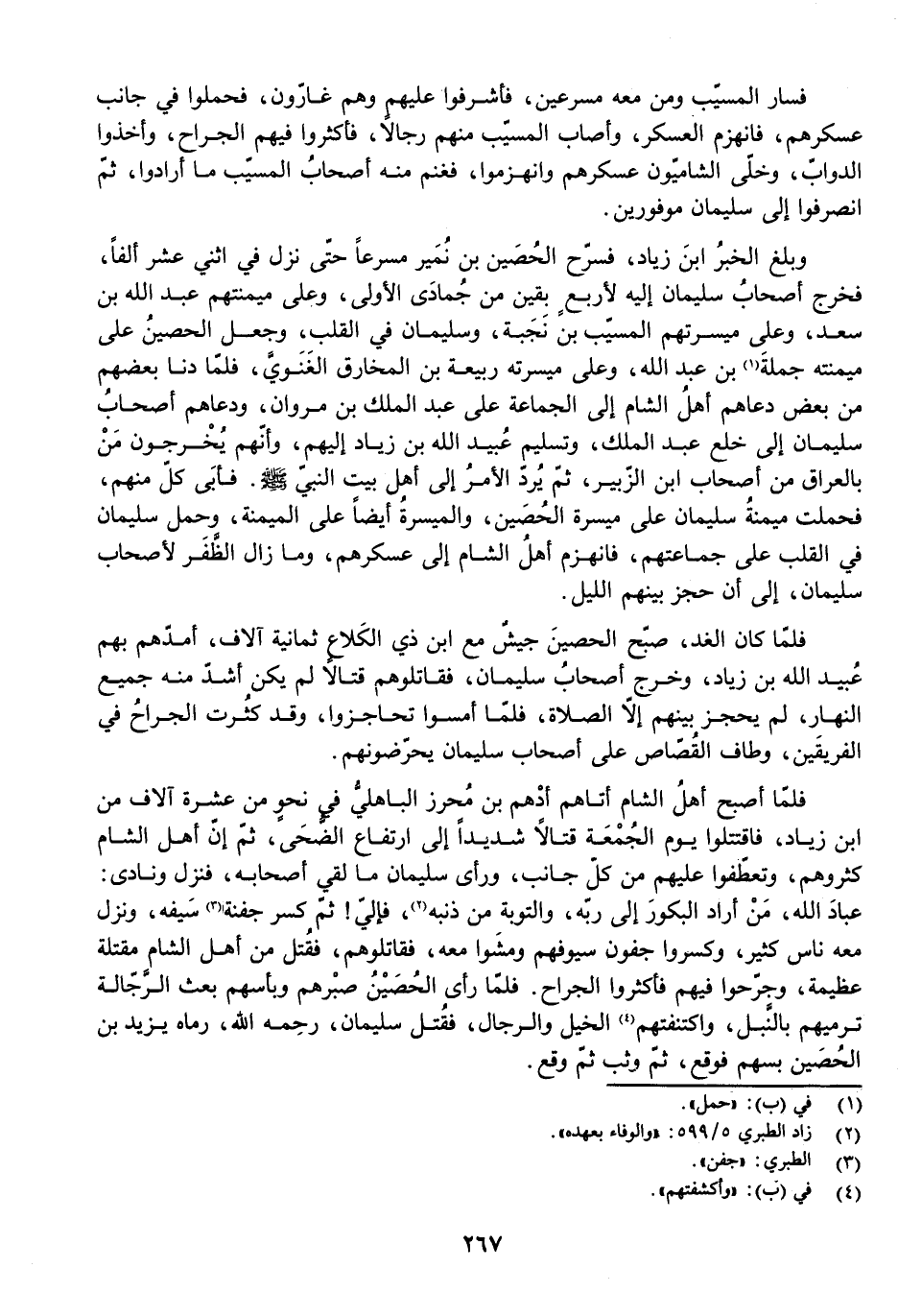 فَأَبَى كُلٌّ مِنْهُمْ، فَحَمَلَتْ مَيْمَنَةُ سُلَيْمَانَ عَلَى مَيْسَرَةِ الْحُصَيْنِ، وَالْمَيْسَرَةُ أَيْضًا عَلَى الْمَيْمَنَةِ، وَحَمَلَ سُلَيْمَانُ فِي الْقَلْبِ عَلَى جَمَاعَتِهِمْ، فَانْهَزَمَ أَهْلُ الشَّامِ إِلَى عَسْكَرِهِمْ، وَمَا زَالَ الظَّفَرُ لِأَصْحَابِ سُلَيْمَانَ إِلَى أَنْ حَجَزَ بَيْنِهِمُ اللَّيْلُ.
