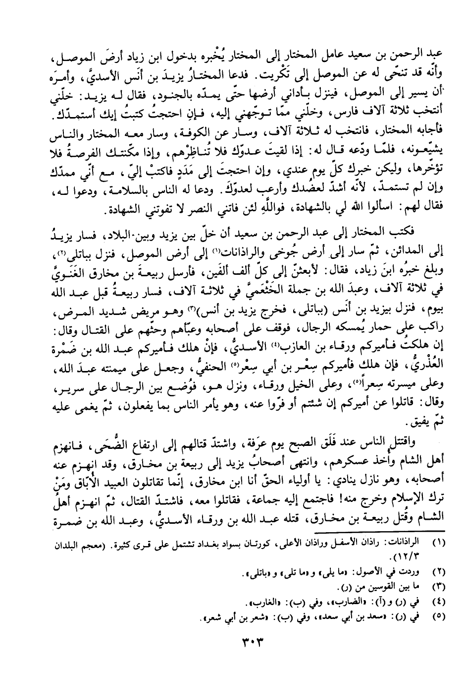 عَبْدُ الرَّحْمَنِ بْنُ سَعِيدٍ عَامِلُ الْمُخْتَارِ إِلَى الْمُخْتَارِ يُخْبِرُهُ بِدُخُولِ ابْنِ زِيَادٍ أَرْضَ الْمَوْصِلِ، وَأَنَّهُ قَدْ تَنَحَّى لَهُ عَنِ الْمَوْصِلِ إِلَى تَكْرِيتَ. فَدَعَا الْمُخْتَارُ يَزِيدَ بْنَ أَنَسٍ الْأَسَدِيَّ، وَأَمَرَهُ أَنْ يَسِيرَ إِلَى الْمَوْصِلِ، فَيَنْزِلَ بِأَدَانِي أَرْضِهَا حَتَّى يَمُدَّهُ بِالْجُنُودِ، فَقَالَ لَهُ يَزِيدُ: خَلِّنِي أَنْتَخِبُ ثَلَاثَةَ آلَافِ فَارِسٍ، وَخَلِّنِي مِمَّا تُوَجِّهُنِي إِلَيْهِ، فَإِنِ احْتَجْتُ كَتَبْتُ إِلَيْكَ أَسْتَمِدُّكَ. فَأَجَابَهُ الْمُخْتَارُ، فَانْتَخَبَ لَهُ ثَلَاثَةَ آلَافٍ، وَسَارَ عَنِ الْكُوفَةِ، وَسَارَ مَعَهُ الْمُخْتَارُ وَالنَّاسُ يُشَيِّعُونَهُ، فَلَمَّا وَدَّعَهُ قَالَ لَهُ: إِذَا لَقِيتَ عَدُوَّكَ فَلَا تُنَاظِرْهُمْ، وَإِذَا مَكَّنَتْكَ الْفُرْصَةُ فَلَا تُؤَخِّرْهَا، وَلْيَكُنْ خَبَرُكَ كُلَّ يَوْمٍ عِنْدِي، وَإِنِ احْتَجْتَ إِلَى مَدَدٍ فَاكْتُبْ إِلَيَّ، مَعَ أَنِّي مُمِدُّكَ وَإِنْ لَمْ تَسْتَمِدَّ ; لِأَنَّهُ أَشَدُّ لِعَضُدِكَ، وَأَرْعَبُ لِعَدُوِّكَ. وَدَعَا لَهُ النَّاسُ بِالسَّلَامَةِ، وَدَعُوا لَهُ، فَقَالَ لَهُمْ: اسْأَلُوا اللَّهَ لِي بِالشَّهَادَةِ، فَوَاللَّهِ لَئِنْ فَاتَنِيَ النَّصْرُ لَا تَفُوتُنِي الشَّهَادَةُ.