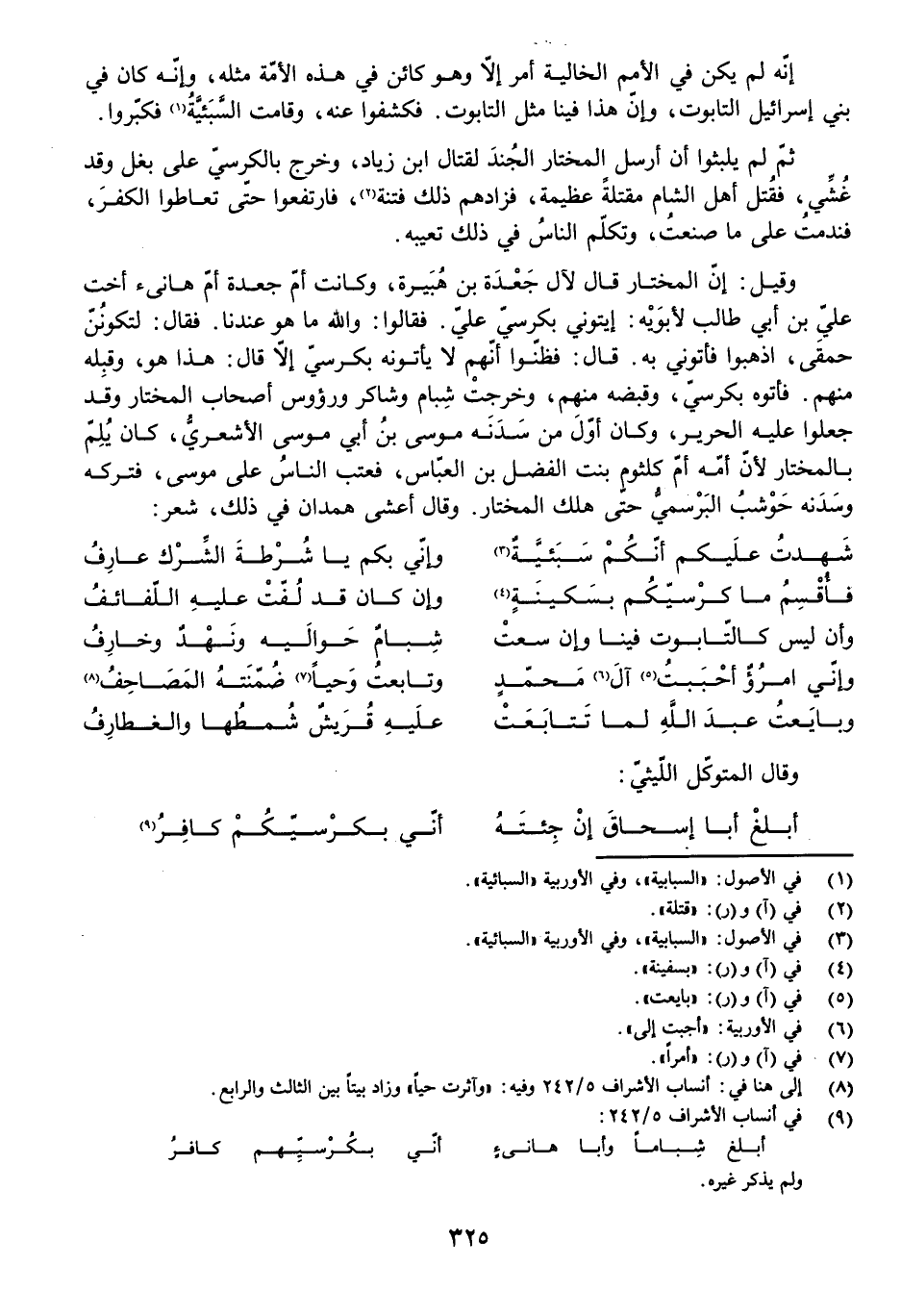 ثُمَّ لَمْ يَلْبَثُوا أَنْ أَرْسَلَ الْمُخْتَارُ الْجُنْدَ لِقِتَالِ ابْنِ زِيَادٍ، وَخَرَجَ بِالْكُرْسِيِّ عَلَى بَغْلٍ وَقَدْ غُشِّيَ، فَقُتِلَ أَهْلُ الشَّامِ مَقْتَلَةً عَظِيمَةً، فَزَادَهُمْ ذَلِكَ فِتْنَةً، فَارْتَفَعُوا حَتَّى تَعَاطَوُا الْكُفْرَ. فَنَدِمْتُ عَلَى مَا صَنَعْتُ وَتَكَلَّمَ النَّاسُ فِي ذَلِكَ تَعِيبُهُ.