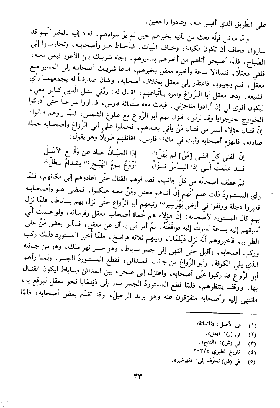 ثُمَّ عَطَفَ أَصْحَابُهُ مِنْ كُلِّ جَانِبٍ، فَصَدَقُوهُمُ الْقِتَالَ حَتَّى أَعَادُوهُمْ إِلَى مَكَانِهِمْ، فَلَمَّا رَأَى الْمُسْتَوْرِدُ ذَلِكَ عَلِمَ أَنَّهُمْ إِنْ أَتَاهُمْ مَعْقِلٌ وَمِنْ مَعَهُ هَلَكُوا، فَمَضَى هُوَ وَأَصْحَابُهُ فَعَبَرُوا دِجْلَةَ وَوَقَفُوا فِي أَرْضِ بَهُرَسِيرَ وَتَبِعَهُمْ أَبُو الرَّوَاغِ حَتَّى نَزَلَ بِهِمْ بِسَابَاطَ، فَلَمَّا نَزَلَ بِهِمْ قَالَ الْمُسْتَوْرِدُ لِأَصْحَابِهِ: إِنَّ هَؤُلَاءِ هُمْ حُمَاةُ أَصْحَابِ مَعْقِلٍ وَفُرْسَانُهُ، وَلَوْ عَلِمْتُ أَنِّي أَسْبِقُهُمْ إِلَيْهِ بِسَاعَةٍ لَسِرْتُ إِلَيْهِ فَوَاقَعْتُهُ. ثُمَّ أَمَرَ مَنْ يَسْأَلُ عَنْ مَعْقِلٍ، فَسَأَلُوا بَعْضَ مَنْ عَلَى الطَّرِيقِ فَأَخْبَرُوهُمْ أَنَّهُ نَزَلَ دَيْلَمَايَا وَبَيْنَهُمْ ثَلَاثَةُ فَرَاسِخَ، فَلَمَّا أُخْبِرَ الْمُسْتَوْرِدُ ذَلِكَ رَكِبَ وَرَكِبَ أَصْحَابُهُ وَأَقْبَلَ حَتَّى انْتَهَى إِلَى جِسْرِ سَابَاطَ، وَهُوَ جِسْرُ نَهْرِ مَلِكٍ، وَهُوَ مِنْ جَانِبِهِ الَّذِي يَلِي الْكُوفَةَ، وَأَبُو الرَّوَاغِ مِنْ جَانِبِ الْمَدَائِنِ، فَقَطَعَ الْمُسْتَوْرِدُ الْجِسْرَ، وَلَمَّا رَآهُمْ أَبُو الرَّوَاغِ قَدْ رَكِبُوا عَبَّى أَصْحَابَهُ وَاعْتَزَلَ إِلَى صَحْرَاءَ بَيْنَ الْمَدَائِنِ وَسَابَاطَ لِيُكُونَ الْقِتَالُ بِهَا وَوَقَفَ يَنْتَظِرُهُمْ، فَلَمَّا قَطَعَ الْمُسْتَوْرِدُ الْجِسْرَ سَارَ إِلَى دَيْلَمَايَا نَحْوَ مَعْقِلٍ لِيُوقِعَ بِهِ، فَانْتَهَى إِلَيْهِ وَأَصْحَابُهُ مُتَفَرِّقُونَ عَنْهُ وَهُوَ يُرِيدُ الرَّحِيلَ وَقَدْ تَقَدَّمَ بَعْضُ أَصْحَابِهِ،