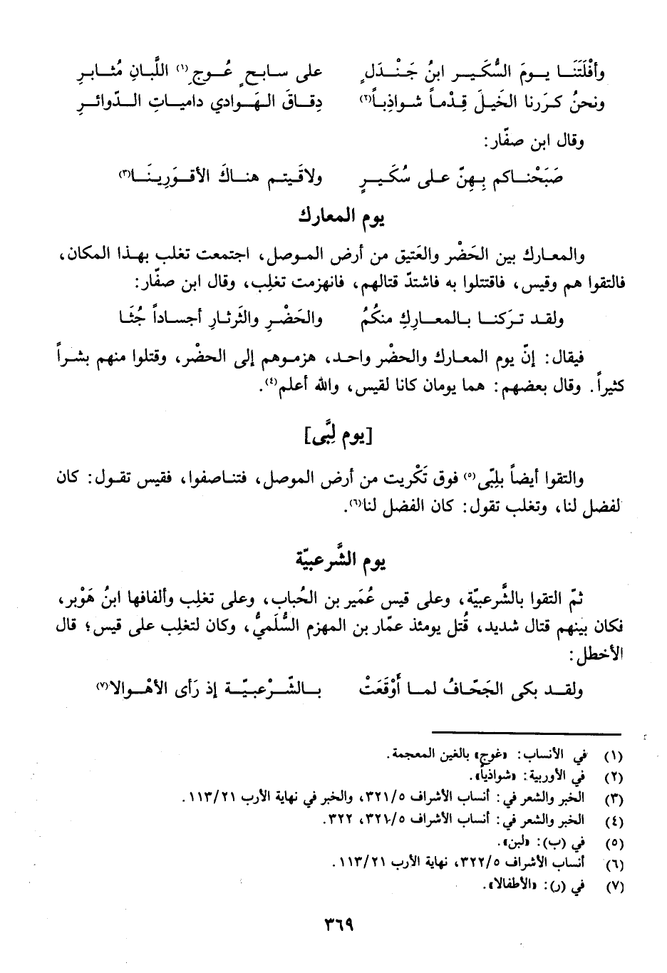 وَالْتَقَوْا أَيْضًا بِلِبَّى فَوْقَ تَكْرِيتَ مِنْ أَرْضِ الْمَوْصِلِ، فَتَنَاصَفُوا، فَقَيْسٌ تَقُولُ: كَانَ الْفَضْلُ لَنَا، وَتَغْلِبُ تَقُولُ: كَانَ الْفَضْلُ لَنَا.