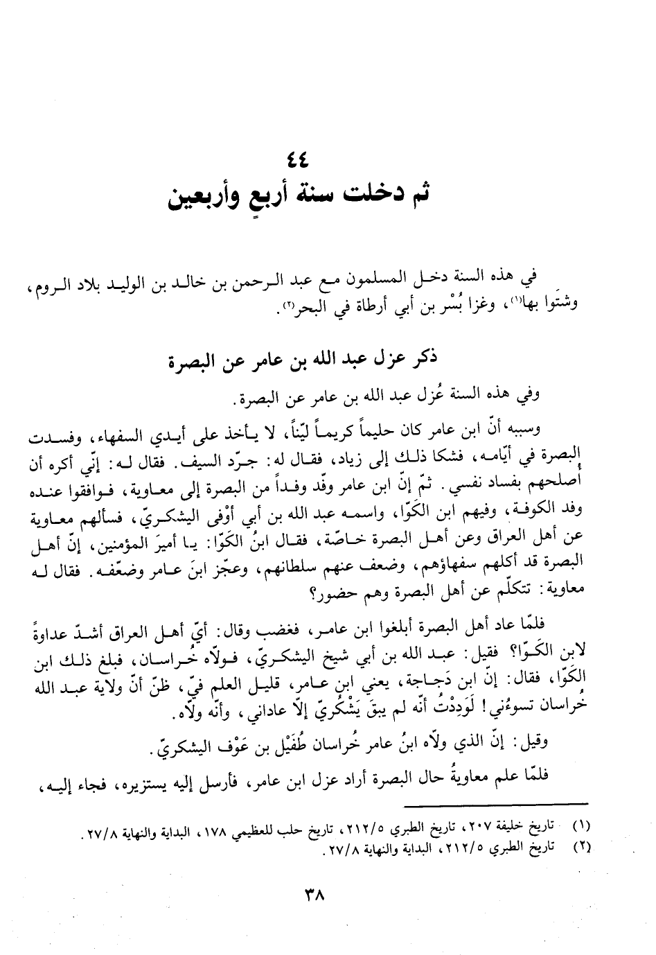 ذِكْرُ عَزْلِ عَبْدِ اللَّهِ بْنِ عَامِرٍ عَنِ الْبَصْرَةِ