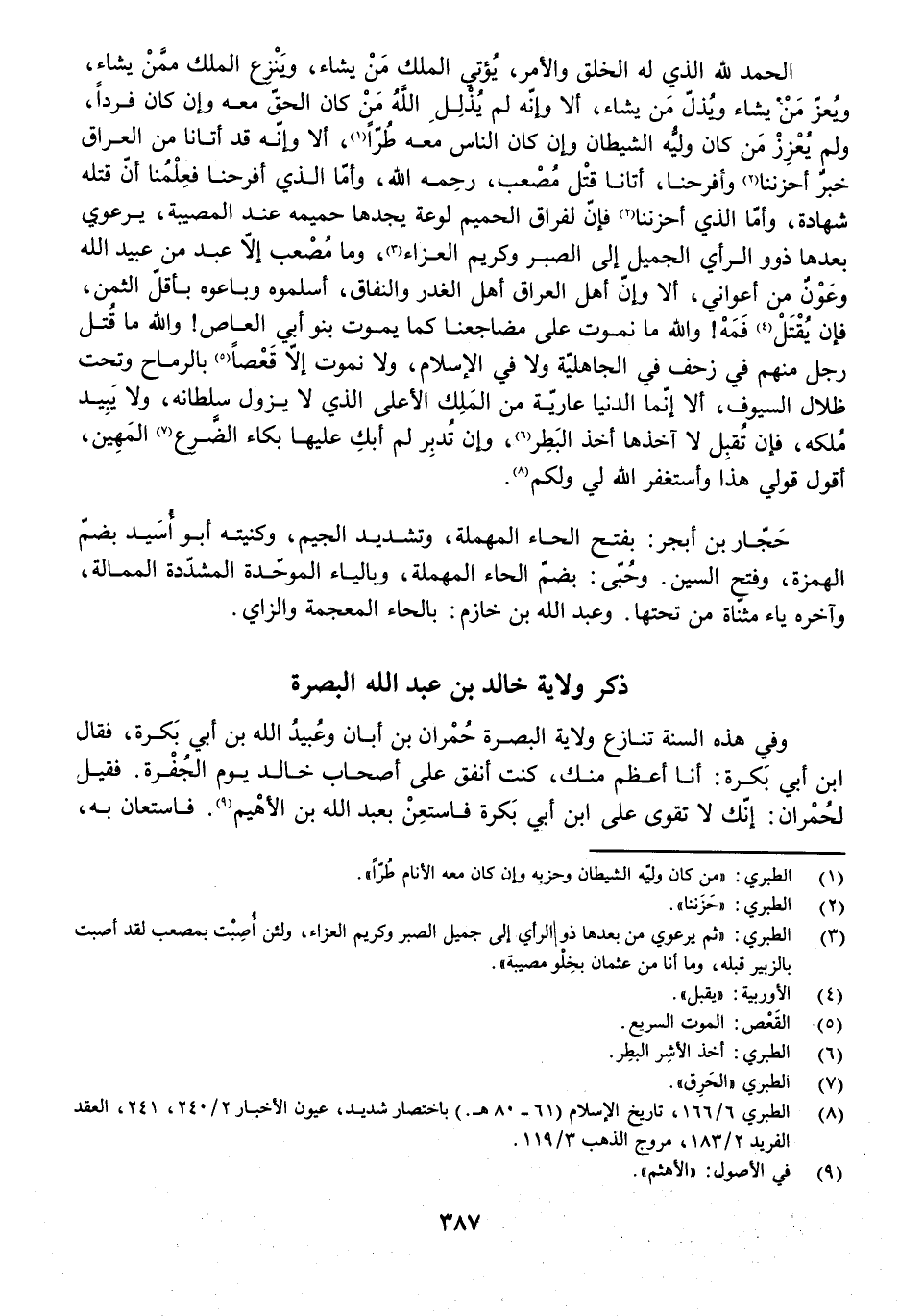 ذِكْرُ وِلَايَةِ خَالِدِ بْنِ عَبْدِ اللَّهِ الْبَصْرَةَ