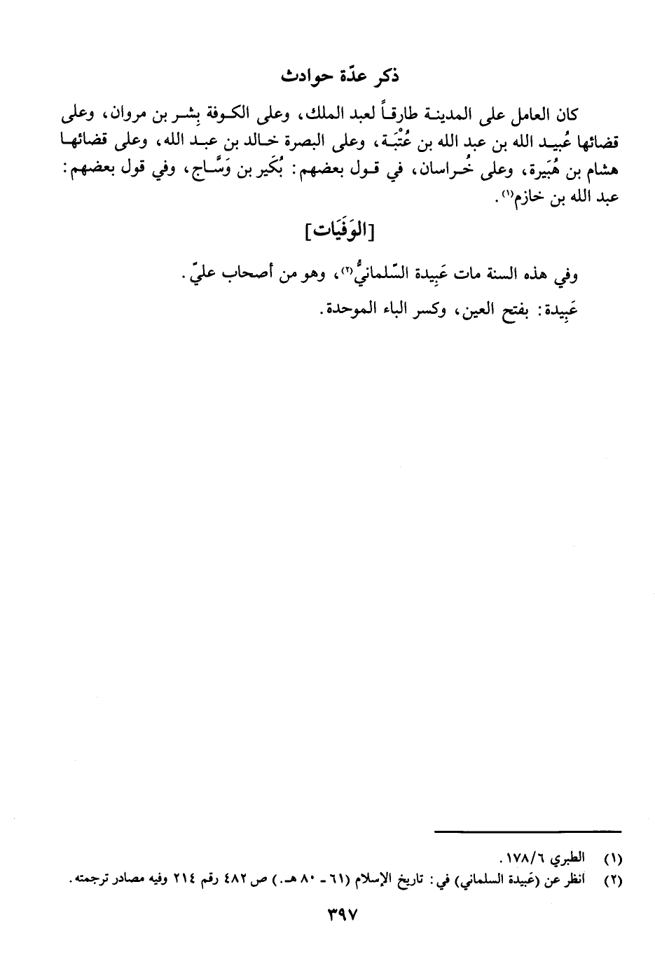وَفِي هَذِهِ السَّنَةِ مَاتَ عَبِيدَةُ السَّلْمَانِيُّ، وَهُوَ مِنْ أَصْحَابِ عَلِيٍّ.