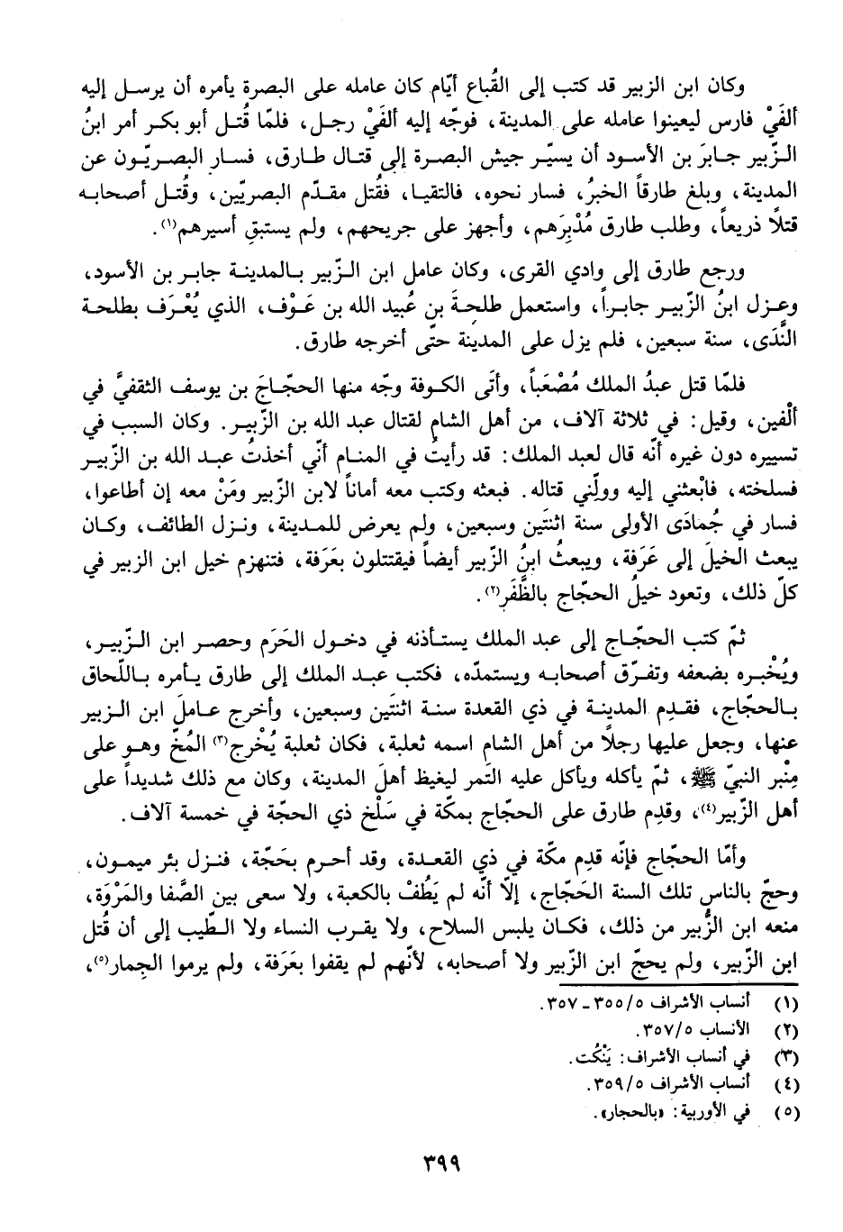 ثُمَّ كَتَبَ الْحَجَّاجُ إِلَى عَبْدِ الْمَلِكِ يَسْتَأْذِنُهُ فِي دُخُولِ الْحَرَمِ وَحَصْرِ ابْنِ الزُّبَيْرِ، وَيُخْبِرُهُ بِضَعْفِهِ وَتَفَرُّقِ أَصْحَابِهِ، وَيَسْتَمِدُّهُ، فَكَتَبَ عَبْدُ الْمَلِكِ إِلَى طَارِقٍ يَأْمُرُهُ بِاللِّحَاقِ بِالْحَجَّاجِ، فَقَدِمَ الْمَدِينَةَ فِي ذِي الْقَعْدَةِ سَنَةَ اثْنَتَيْنِ وَسَبْعِينَ، وَأَخْرَجَ عَامِلَ ابْنِ الزُّبَيْرِ عَنْهَا، وَجَعَلَ عَلَيْهَا رَجُلًا مِنْ أَهْلِ الشَّامِ اسْمُهُ ثَعْلَبَةُ، فَكَانَ ثَعْلَبَةُ يُخْرِجُ الْمُخَّ وَهُوَ عَلَى مِنْبَرِ النَّبِيِّ - صَلَّى اللَّهُ عَلَيْهِ وَسَلَّمَ - ثُمَّ يَأْكُلُهُ وَيَأْكُلُ عَلَيْهِ التَّمْرَ لِيَغِيظَ أَهْلَ الْمَدِينَةِ، وَكَانَ مَعَ ذَلِكَ شَدِيدًا عَلَى أَهْلِ الزُّبَيْرِ، وَقَدِمَ طَارِقٌ عَلَى الْحَجَّاجِ بِمَكَّةَ فِي سَلْخِ ذِي الْحِجَّةِ فِي خَمْسَةِ آلَافٍ.