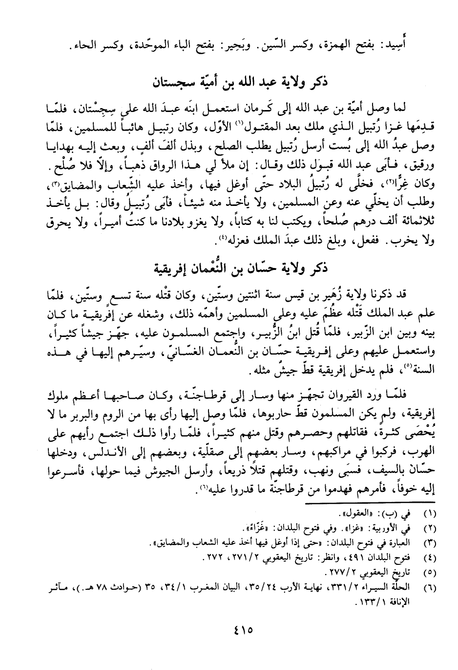 ذِكْرُ وِلَايَةِ عَبْدِ اللَّهِ بْنِ أُمَيَّةَ سِجِسْتَانَ