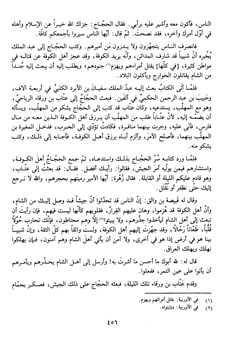 النَّاسِ، فَأَكُونُ مَعَهُ وَأُشِيرُ عَلَيْهِ بِرَأْيِي. فَقَالَ الْحَجَّاجُ: جَزَاكَ اللَّهُ خَيْرًا عَنِ الْإِسْلَامِ وَأَهْلِهِ فِي أَوَّلِ أَمْرِكَ وَآخِرِهِ، فَقَدْ نَصَحْتَ. ثُمَّ قَالَ: أَيُّهَا النَّاسُ، سِيرُوا بِأَجْمَعِكُمْ كَافَّةً.