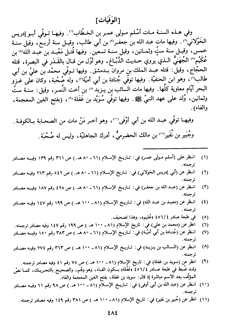 وَفِيهَا تُوُفِّيَ مُحَمَّدُ بْنُ عَلِيِّ بْنِ أَبِي طَالِبٍ، وَهُوَ ابْنُ الْحَنَفِيَّةِ. وَفِيهَا تُوُفِّيَ جُنَادَةُ بْنُ أَبِي أُمَيَّةَ، وَلَهُ صُحْبَةٌ، وَكَانَ عَلَى غَزْوِ الْبَحْرِ أَيَّامَ مُعَاوِيَةَ كُلِّهَا. وَفِيهَا مَاتَ السَّائِبُ بْنُ يَزِيدَ بْنِ أُخْتِ النَّمِرِ، وَقِيلَ: سَنَةَ سِتٍّ وَثَمَانِينَ، وُلِدَ عَلَى عَهْدِ النَّبِيِّ - صَلَّى اللَّهُ عَلَيْهِ وَسَلَّمَ -. وَفِيهَا تُوُفِّيَ سُوَيْدُ بْنُ غَفَلَةَ، (بِفَتْحِ الْغَيْنِ الْمُعْجَمَةِ وَالْفَاءِ) .