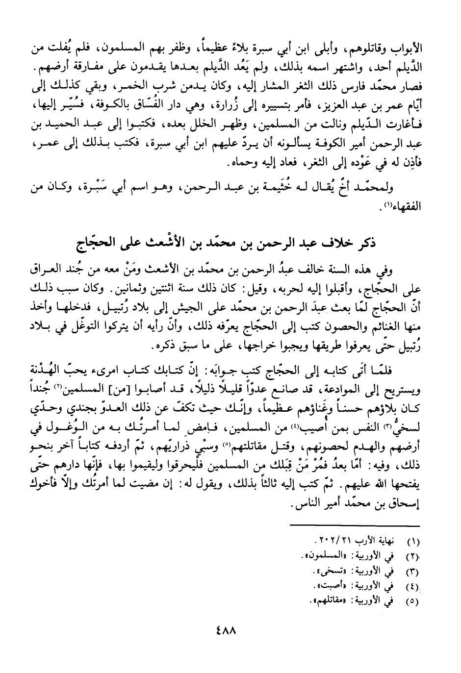 ذِكْرُ خِلَافِ عَبْدِ الرَّحْمَنِ بْنِ مُحَمَّدِ بْنِ الْأَشْعَثِ عَلَى الْحَجَّاجِ